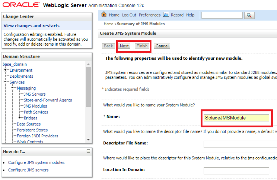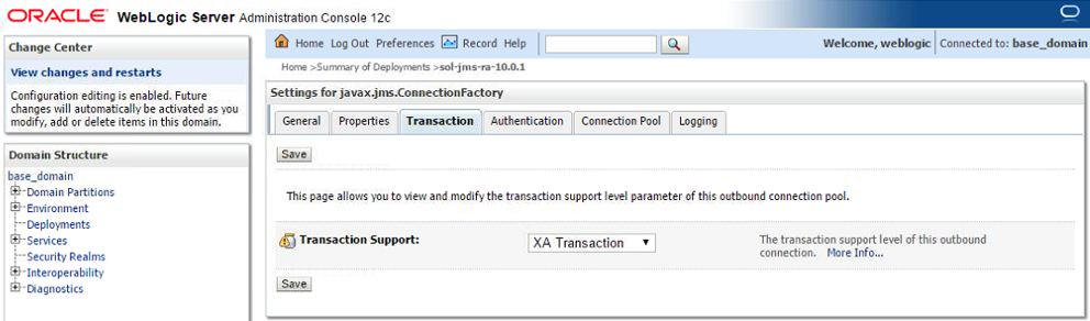 Note this document provides instructions on configuring and deploying the Solace JCA 1.5 resource adapter using the web console application of WebLogic, as well as instructions on configuring Solace as a Foreign JMS Provider Module. For detailed background on either Solace JMS or the WebLogic Application Server refer to the referenced documents below.